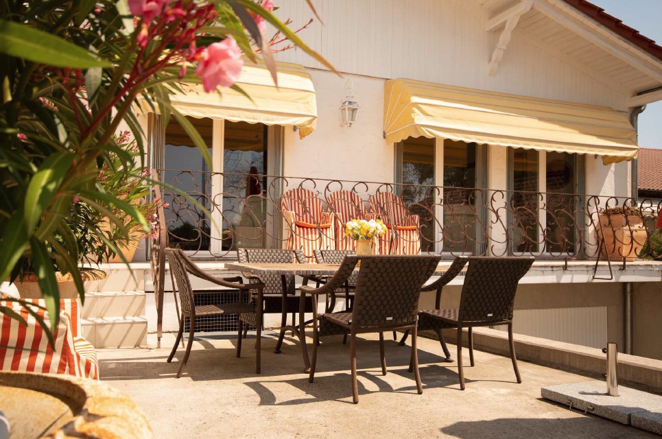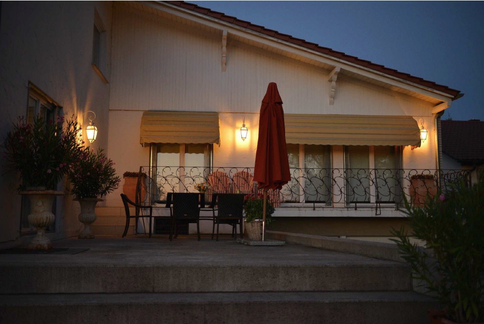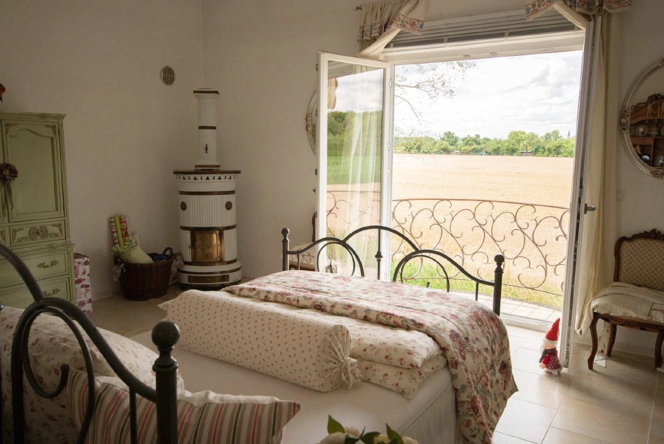 Die drei Doppelflügligen Balkontüren bieten einen wunderschönen Ausblick in die unverbaubare Natur auf Wiesen, Sonnenuntergänge und den kleinen Vorgarten. Auf der Sonnenterrasse ist