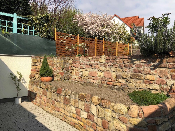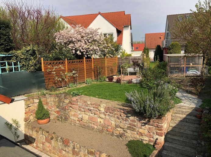 Auf ca. 374 qm Grundstück entstand 2004 diese moderne Doppelhaushälfte in Massivbauweise in begehrter und ruhiger Lage von Altrip in der sich 2 Wohnungen befinden. Insgesamt verfügt die Maisonette Wohnung über ca.175 qm Wohnfläche im Erd-und Gartengeschoss. Im EG verteilt auf den Eingangsbereich, ein Gäste-WC, eine separate große Wohnküche. Vom lichtdurchfluteten, großzügigen Wohn-Essbereich haben Sie direkten Zugang auf eine sonnige Terrasse. Hier können Sie behagliche Stunden mit Familie und Freunde verbringen. Zusätzlich könnte im Winter ein Holzofen im Wohnbereich für eine mollige Wärme sorgen. Die Kamin Vorrichtung ist bereits vorhanden. Im Gartengeschoss befinden sich 2 Schlafzimmer mit direktem Zugang zur Terrasse und dem wunderschönen, eigenen Garten, sowie ein Tageslichtbad mit Wanne und Dusche und der Hauswirtschaftsraum, sowie der Heizungsraum. Die Böden sind einheitlich mit Feinsteinzeug Fliesen ausgelegt. Abgerundet wird dieses tolle Angebot durch eine Garage, ein Kellerraum und 2 Stellplätze.