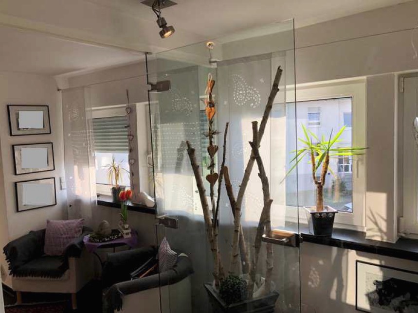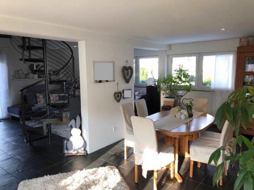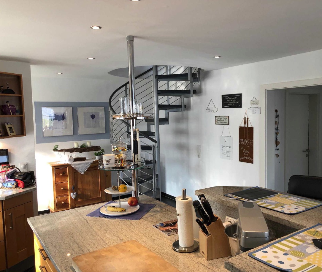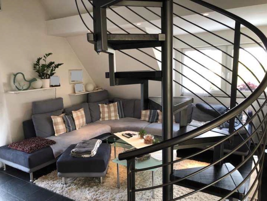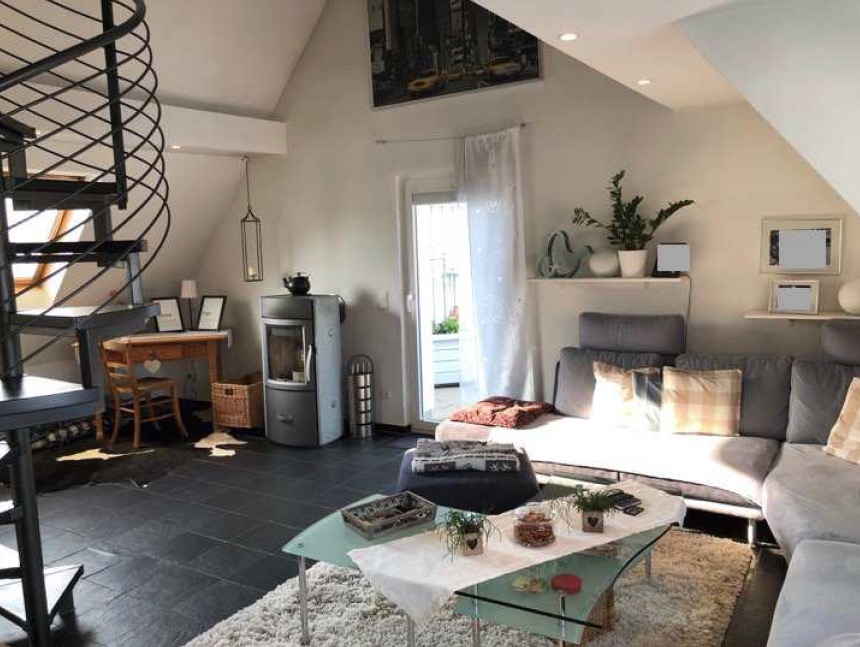 Insgesamt verfügt die Wohnung über 4 Zimmer, 1 Küche, 1Tageslichtbad, 1 Gäste-WC, die Speisekammer, Diele und Terrasse. Bereits im Eingang erlebt man die wohnliche Atmosphäre. Von hier aus kommt man in einen großen Bereich in dem links die moderne große Küche mit Essecke, sowie ein Arbeitszimmer und das Bad sich befinden. Rechts gelangt man in den gemütlichen Wohn-und Esszimmer Bereich mit Zugang zur sonnigen Terrasse. Des Weiteren kommt man über eine im Wohnzimmer integrierte Wendeltreppe, auf eine kleine gemütliche Galerie.