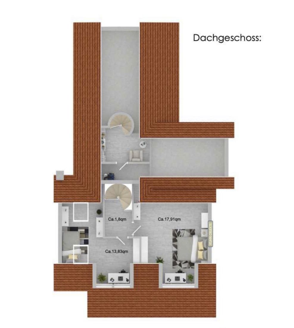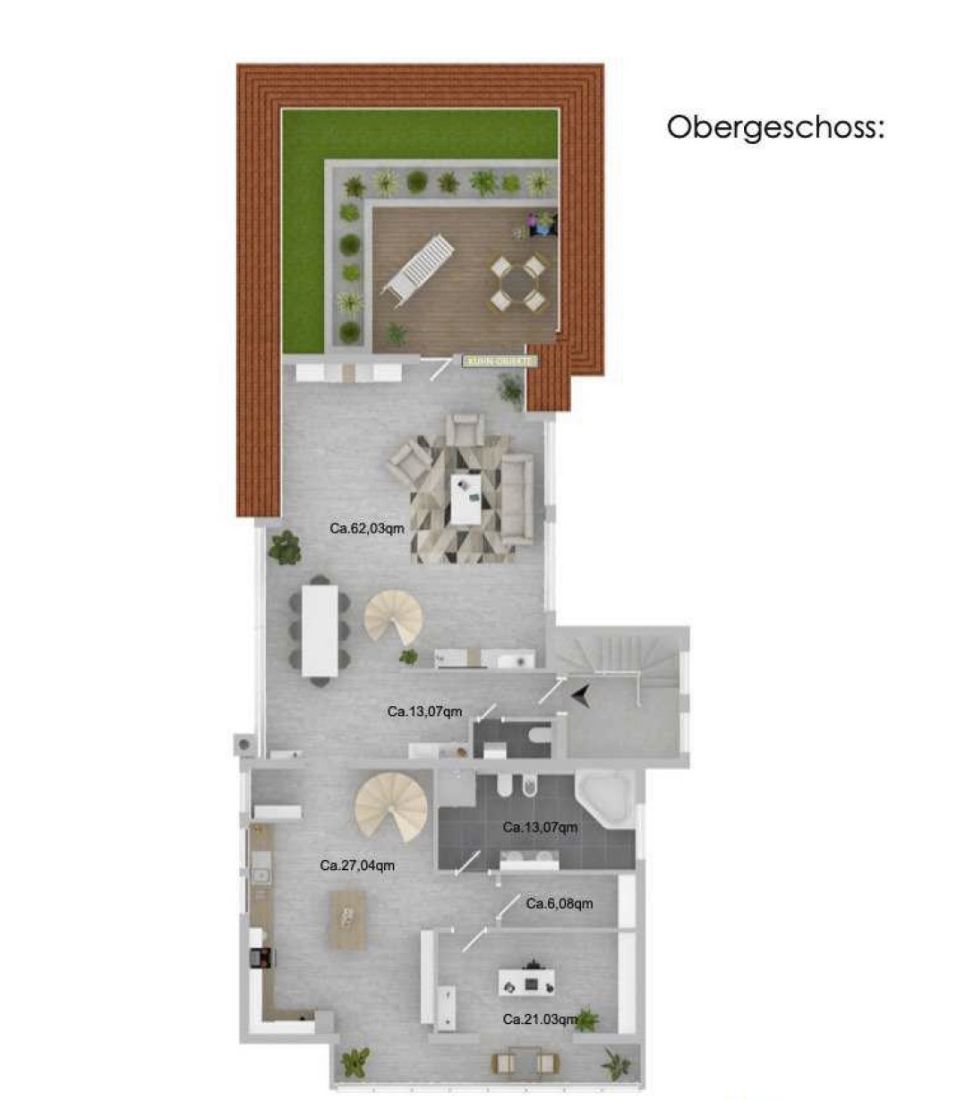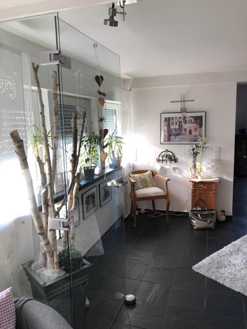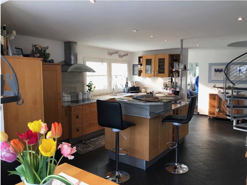 Insgesamt verfügt die Wohnung über 4 Zimmer, 1 Küche, 1Tageslichtbad, 1 Gäste-WC, die Speisekammer, Diele und Terrasse. Bereits im Eingang erlebt man die wohnliche Atmosphäre. Von hier aus kommt man in einen großen Bereich in dem links die moderne große Küche mit Essecke, sowie ein Arbeitszimmer und das Bad sich befinden. Rechts gelangt man in den gemütlichen Wohn-und Esszimmer Bereich mit Zugang zur sonnigen Terrasse. Des Weiteren kommt man über eine im Wohnzimmer integrierte Wendeltreppe, auf eine kleine gemütliche Galerie.