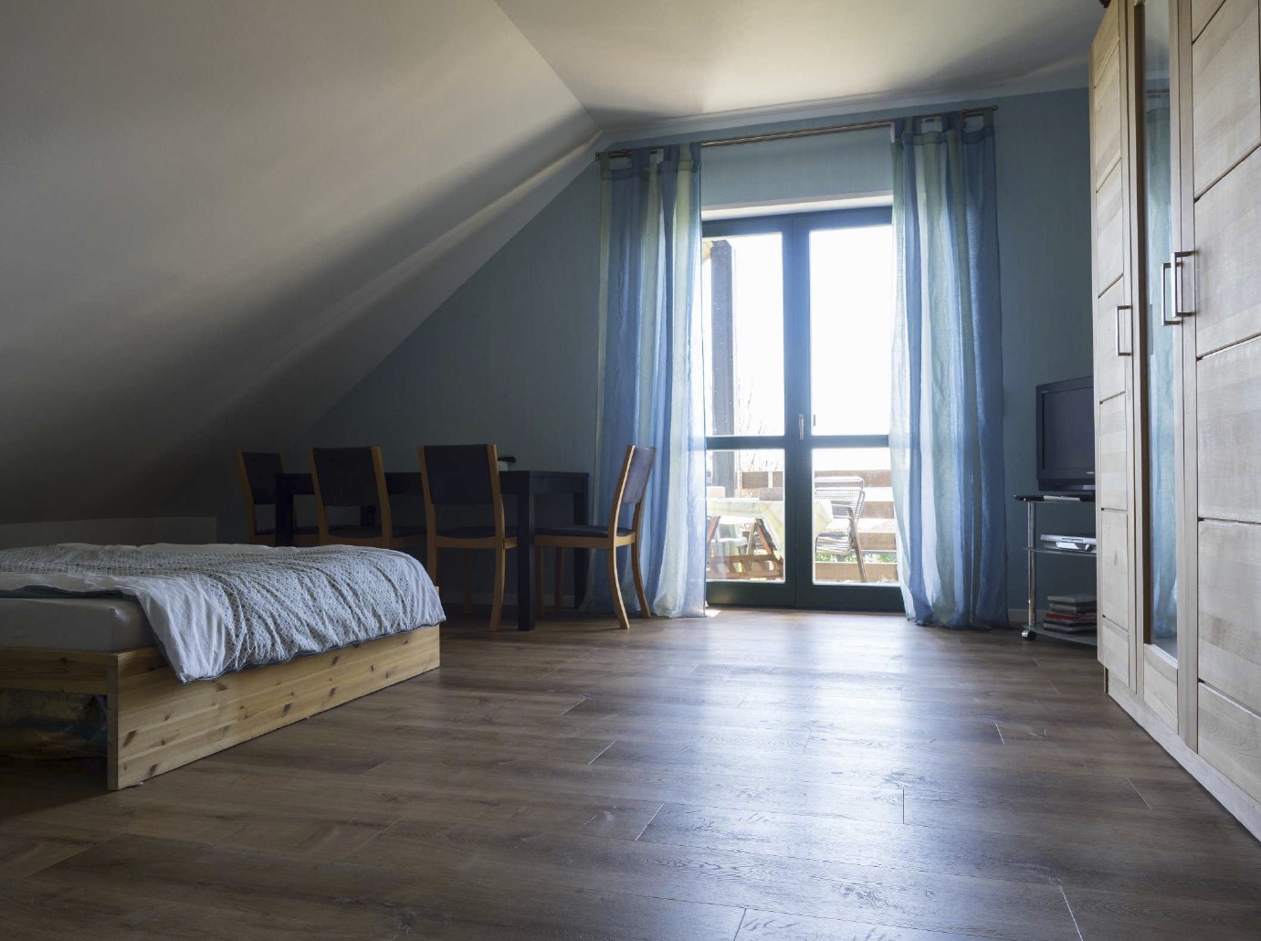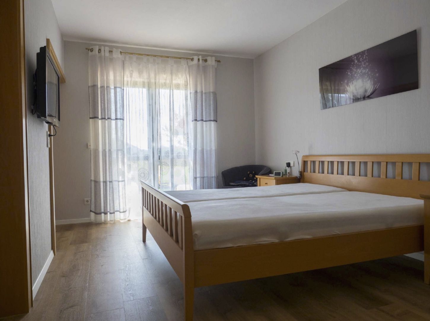 Elternschlafzimmer mit Ankleide und Bad en Suite im EG und Zugang zur Terrasse.