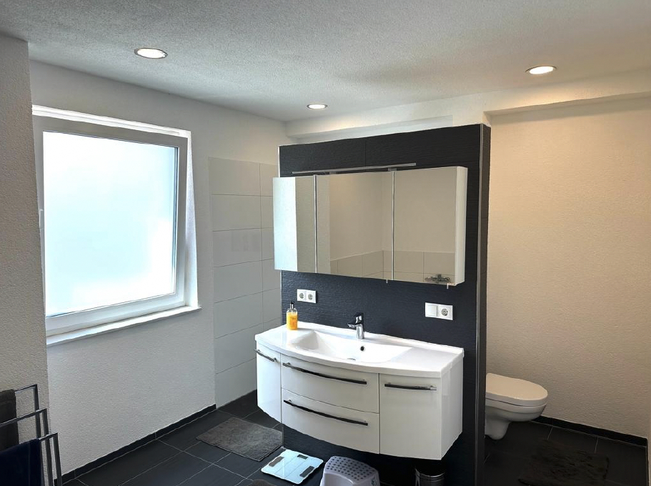 Böden: hochwertiges Laminat, Fliesen