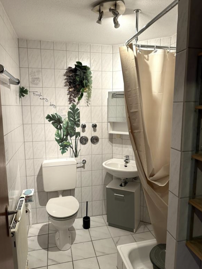 1 Bad mit Badewanne und Waschmaschinenanschluss