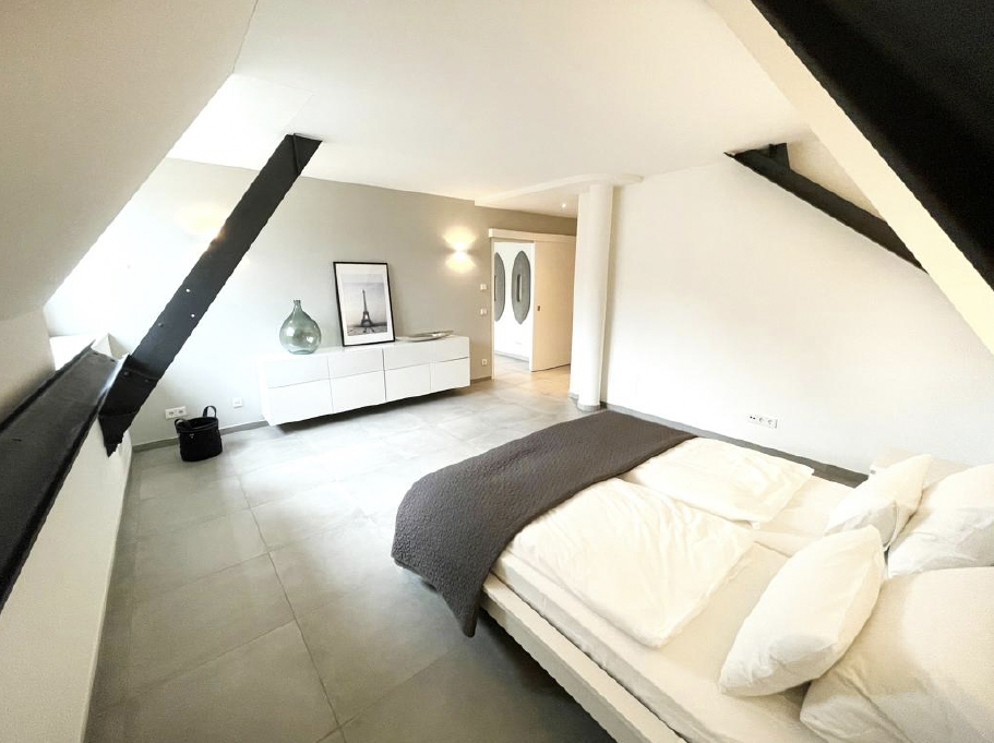 Links der Living-Area befindet sich der private Masterbereich mit Schlafzimmer, großzügiger Ankleide und einem luxuriösen Bad en suite. Auf der gegenüberliegenden Seite liegt ein weiterer, großzügig geschnittener Raum, der sich flexibel als Schlafzimmer, Homeoffice oder Gästezimmer nutzen lässt.