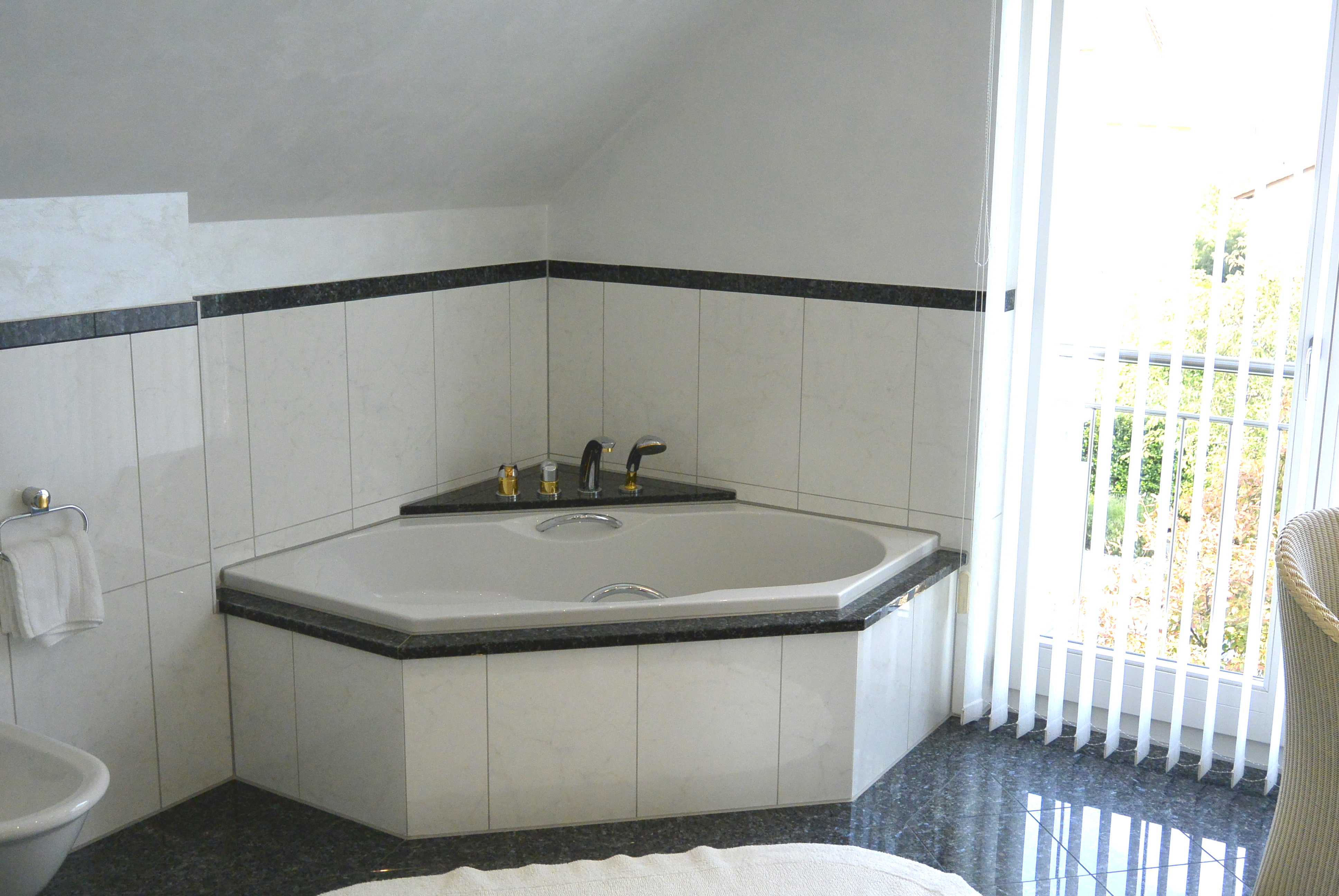 Vom Flur führt eine Treppe in die obere Etage und hinunter zum Keller, der auch für private oder gewerbliche Zwecke genutzt werden kann. Im Obergeschoss befinden sich neben dem eleganten, Tageslicht Granitbad, die Galerie, ein Kinderzimmer, das Elternschlafzimmer mit Ankleideraum und Balkon.