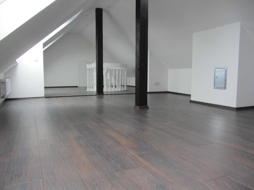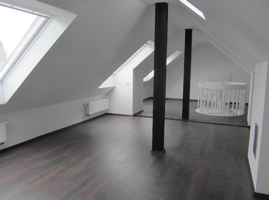 ein Tageslichtbad mit Dusche und Badewanne. Über eine im Flur integrierte Treppe gelangen Sie in den ausgebauten Spitzboden. Hier befinden sich ein großzügiges Dachstudio. Für Ihre Fahrzeuge stehen Ihnen zwei Tiefgaragenstellplätze Stellplatz zur Verfügung.