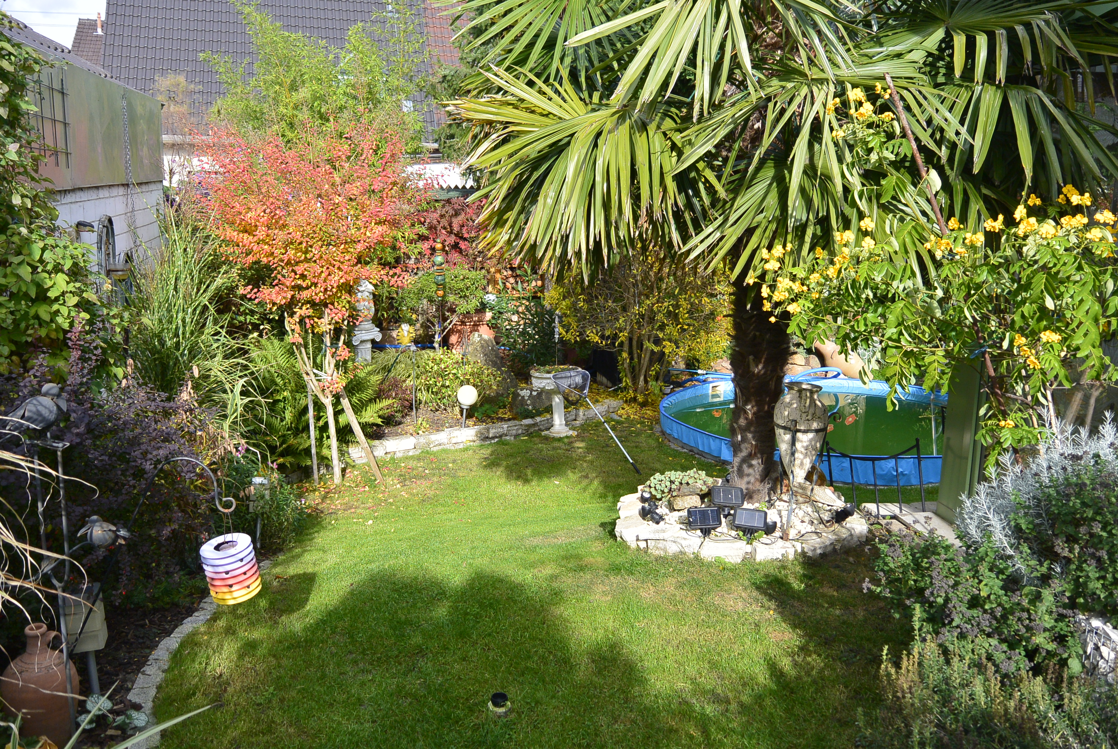 Diese individuelle, charmante Immobilie erstreckt sich auf einer gesamte Wohnfläche von ca. 206 m² und verfügt über eine offene Küche, ein großzügiger Wohn-Essbereich mit direktem Zugang zum Wintergarten, Terrasse und den schön gestalteten Garten mit kleinem Pool und Gartenteich. Hier können Sie behagliche Stunden im Freien verbringen.