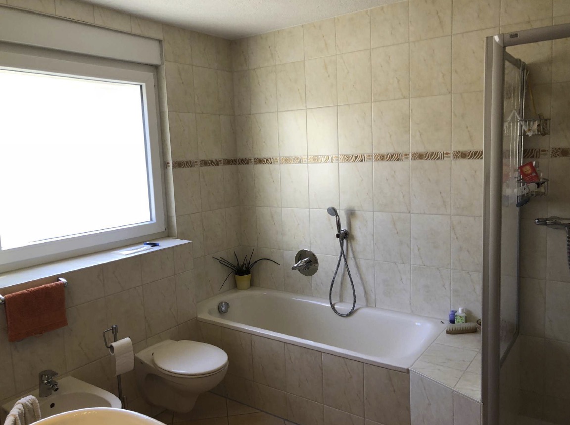 Diese attraktive, moderne Maisonette Wohnung Baujahr 2005 erstreckt sich über zwei Etagen. Der Wohnräume verteilen sich insgesamt auf ca. 130 qm Wohnfläche. Vom großzügigen Wohn-/Essbereich mit separater Küche haben Sie Zugang zum sonnigen Balkon. Des Weiteren befinden sich auf dieser Ebene 2 Schlafzimmer, ein Tageslichtbad mit Dusche und Badewanne sowie ein Gäste-WC. Über eine im Flur integrierte Treppe gelangen Sie in den unteren Bereich. Hier befinden sich nochmals 3 Zimmer, Abstellraum und ein Duschbad mit Waschmaschine und Trockneranschluss. Die beiden Bäder sind per Wäscheabwurf verbunden.