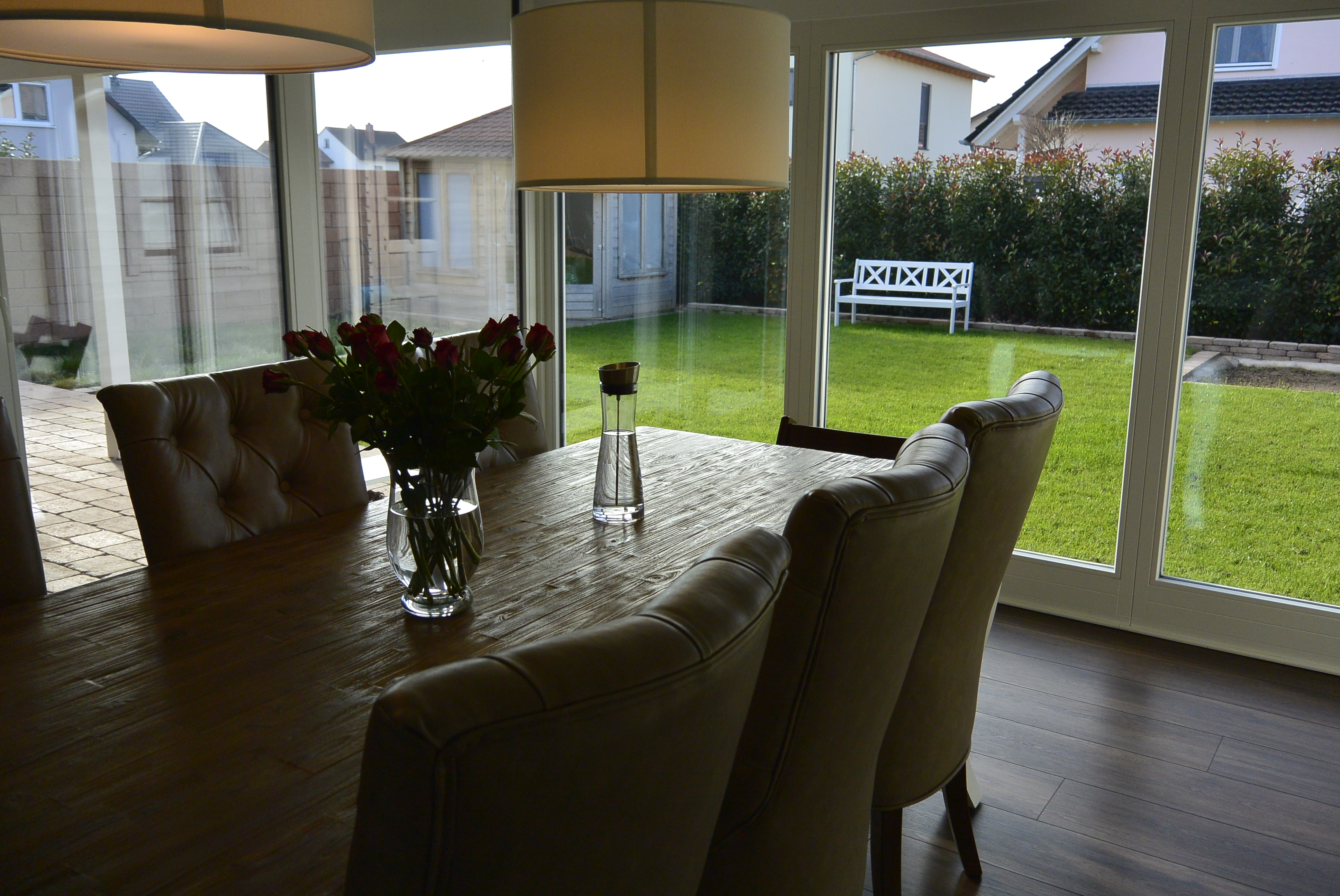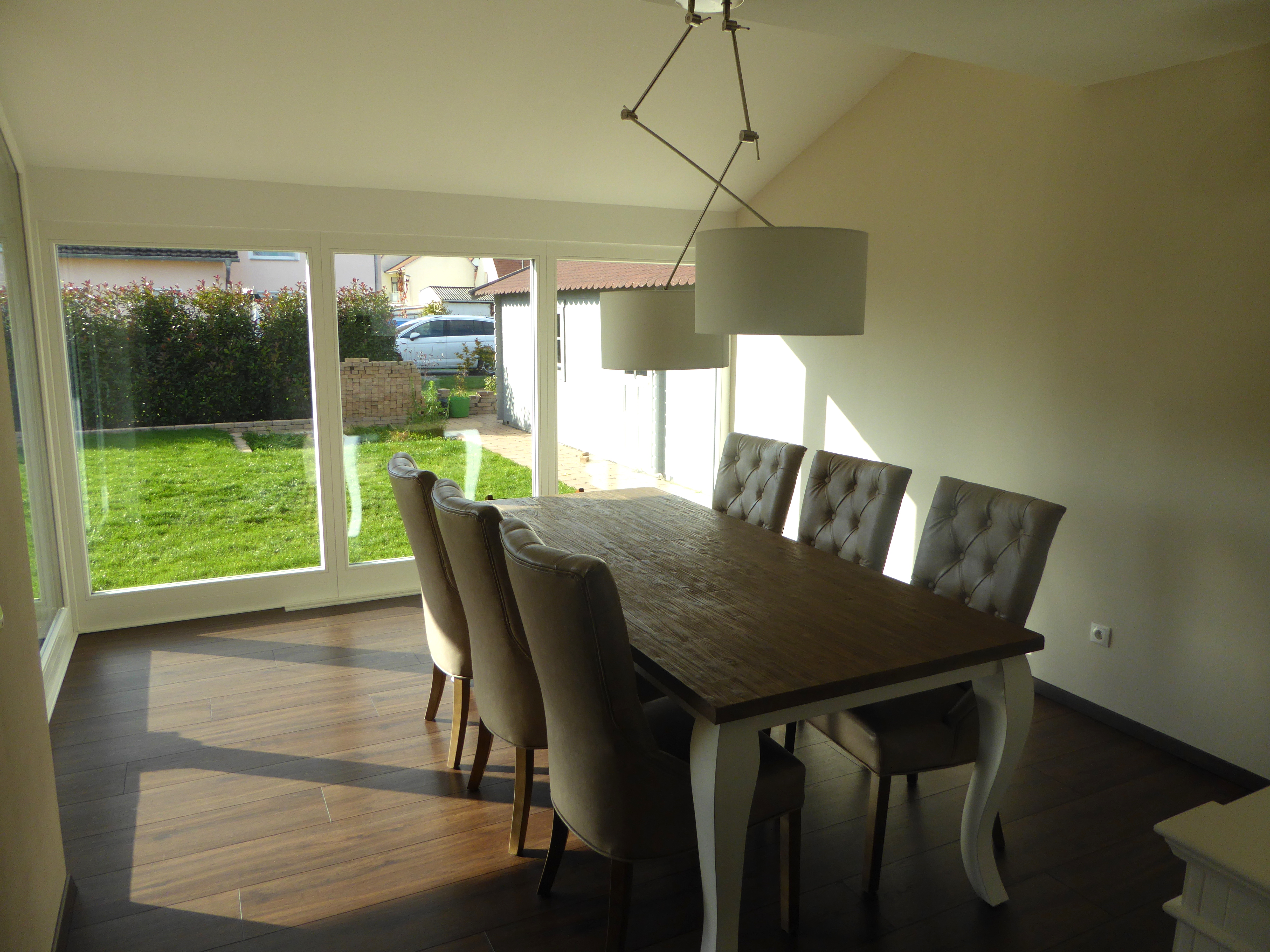 Die offene Einbauküche mit angrenzendem Hauswirtschaftsraum, das lichtdurchflutete Esszimmer im Wintergarten mit Zugang zur Terrasse und Garten lassen keine Wünsche offen. Hier können Sie gemütliche Sommerabenden mit Familie und Freunden verbringen.