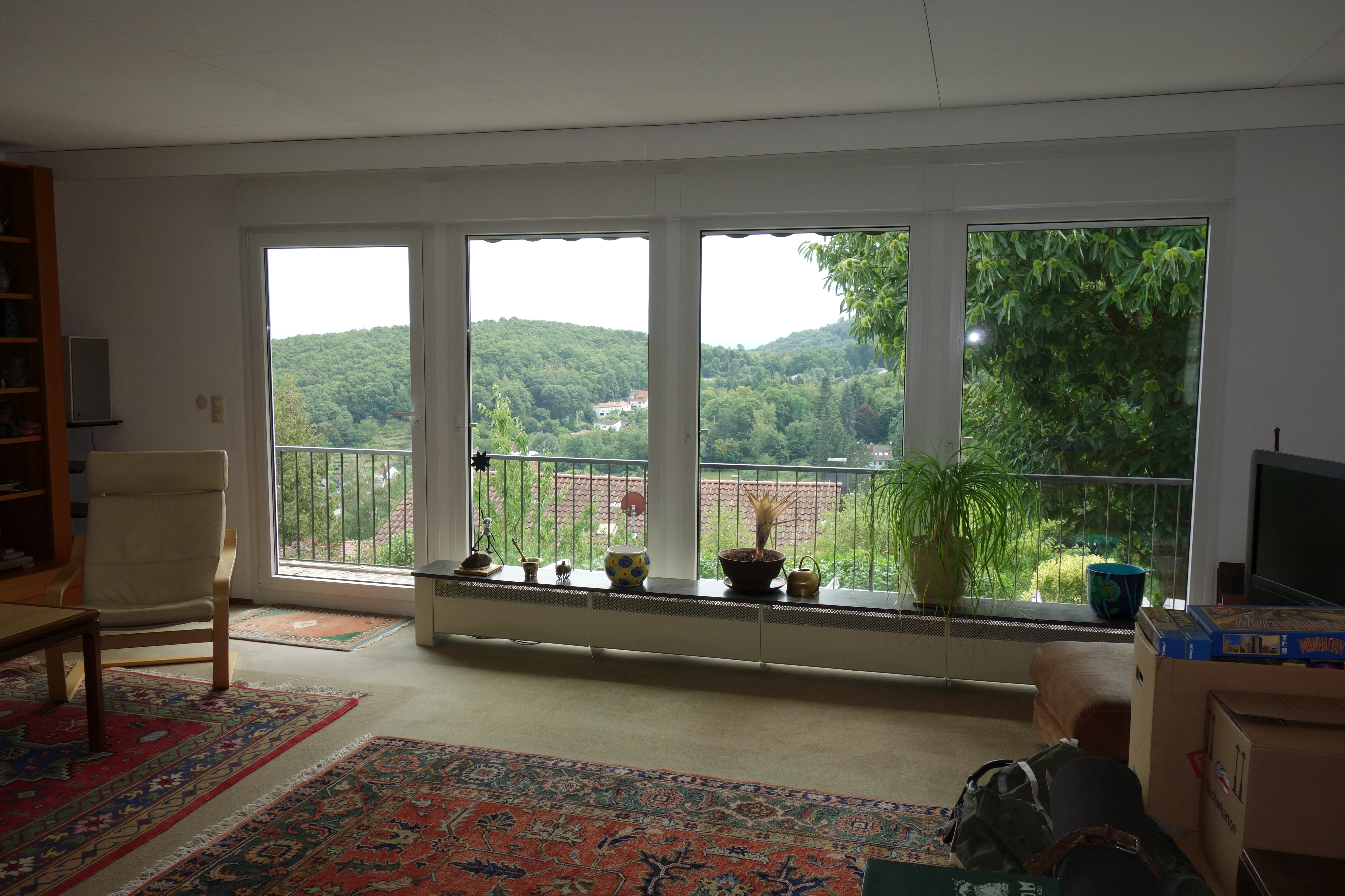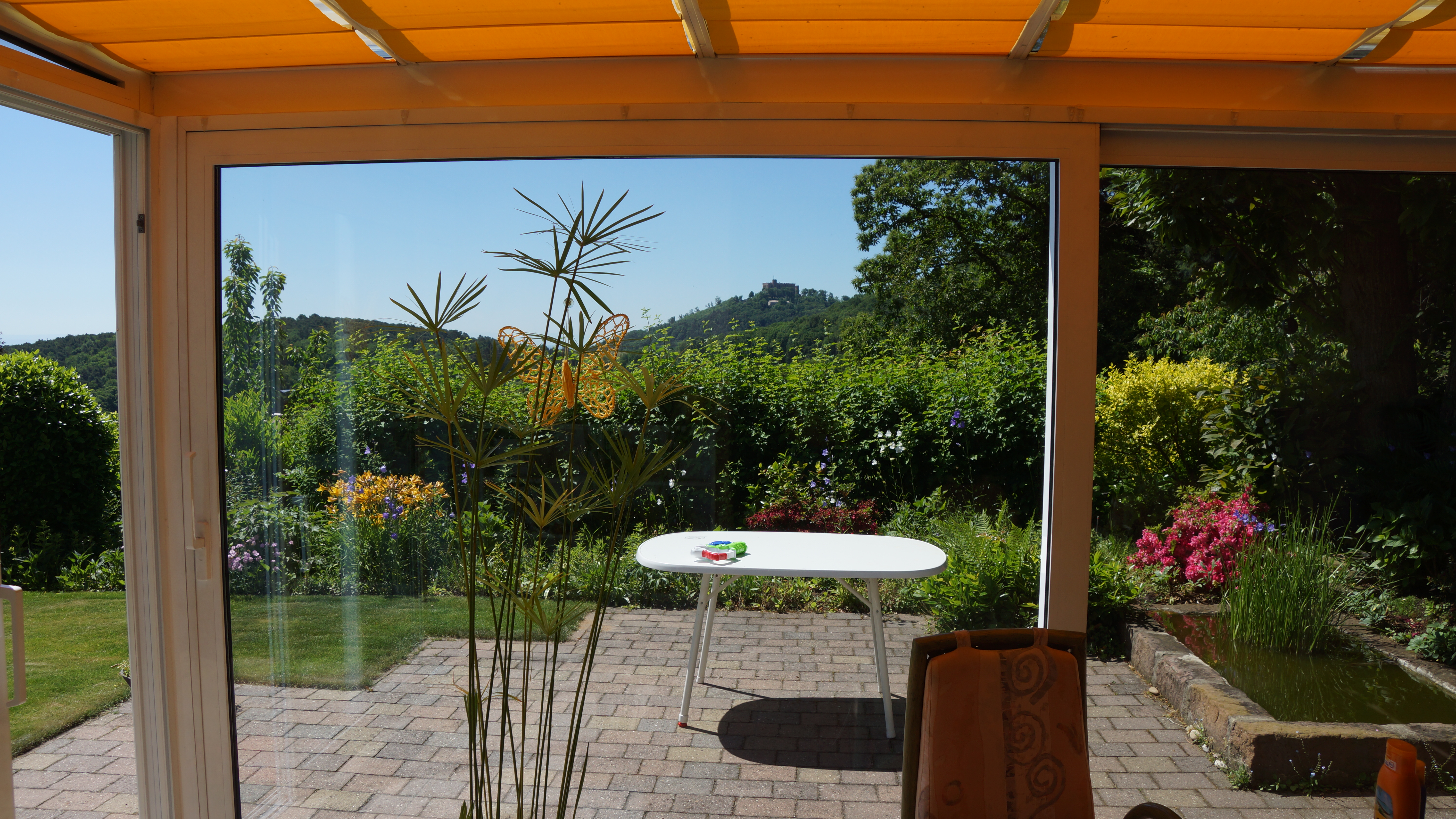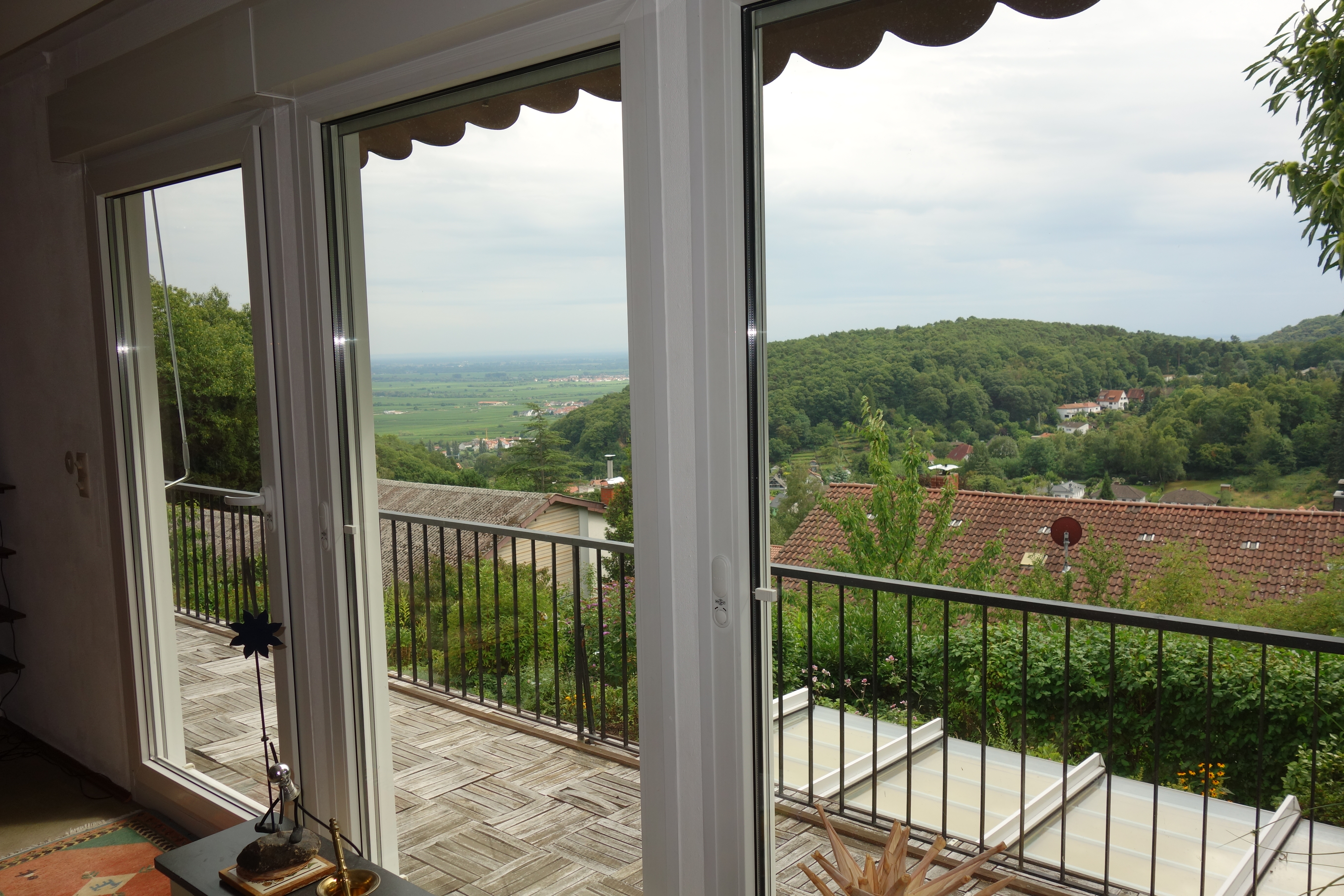 Wohnzimmer mit Panorama Blick auf das Hambacher Schloss