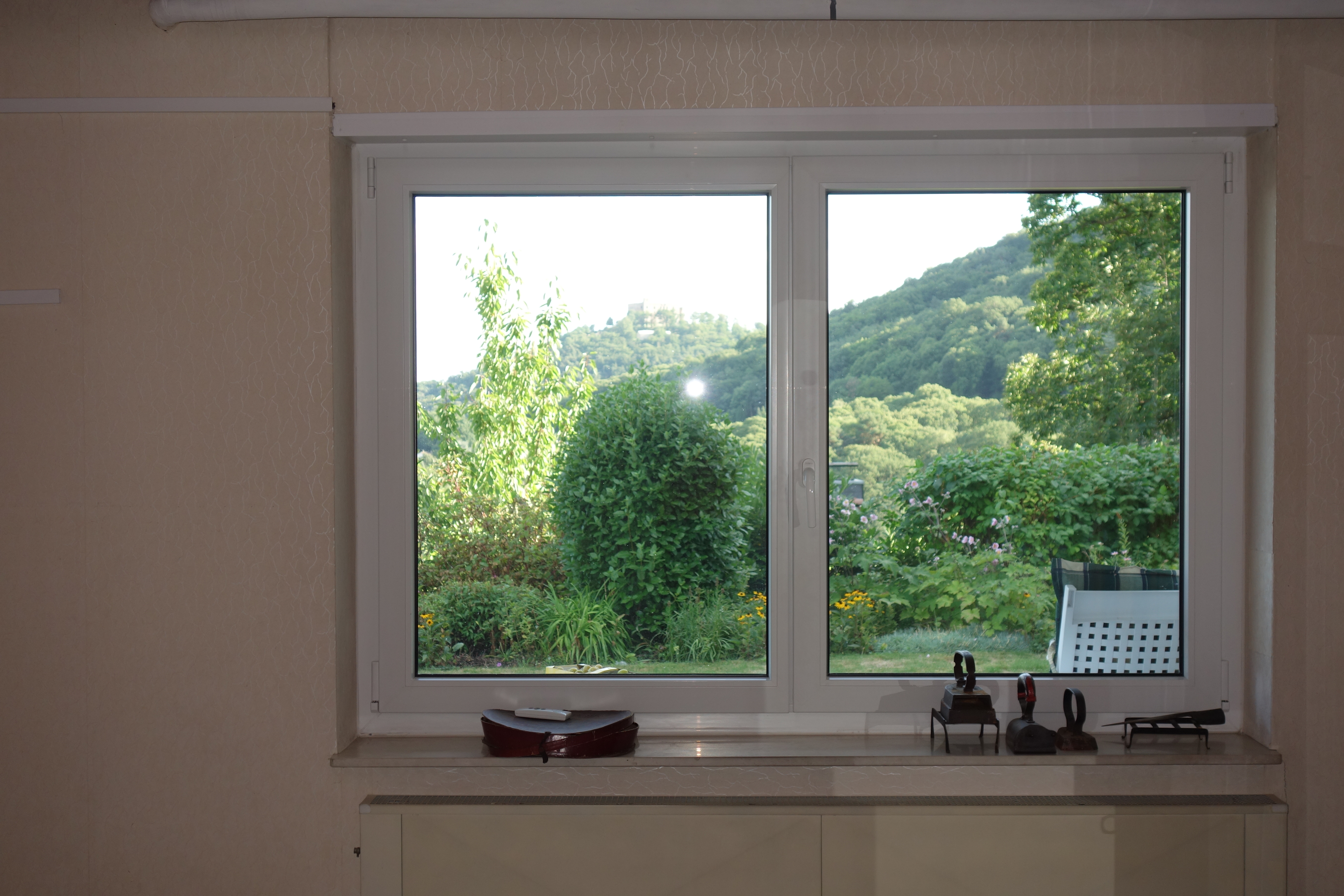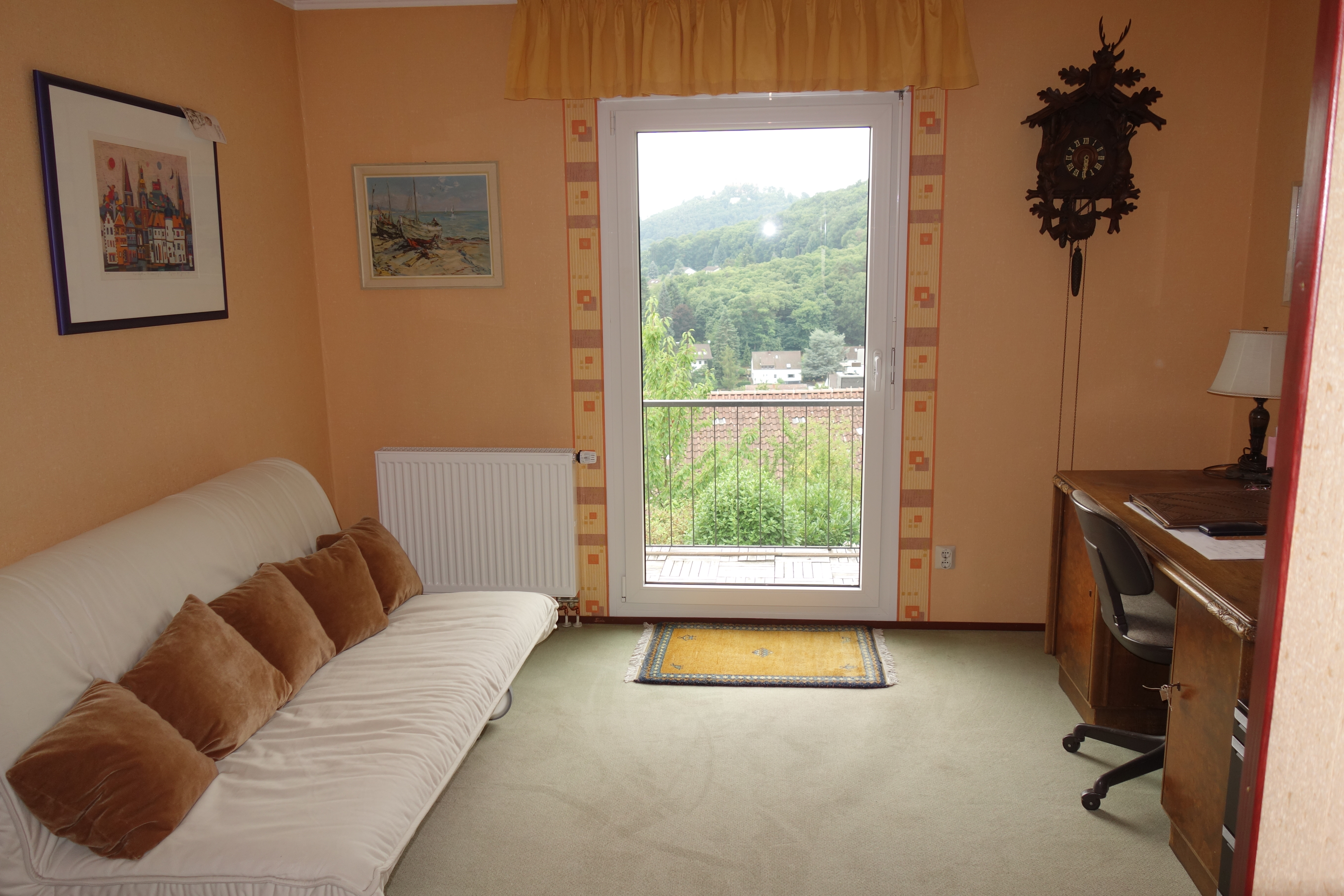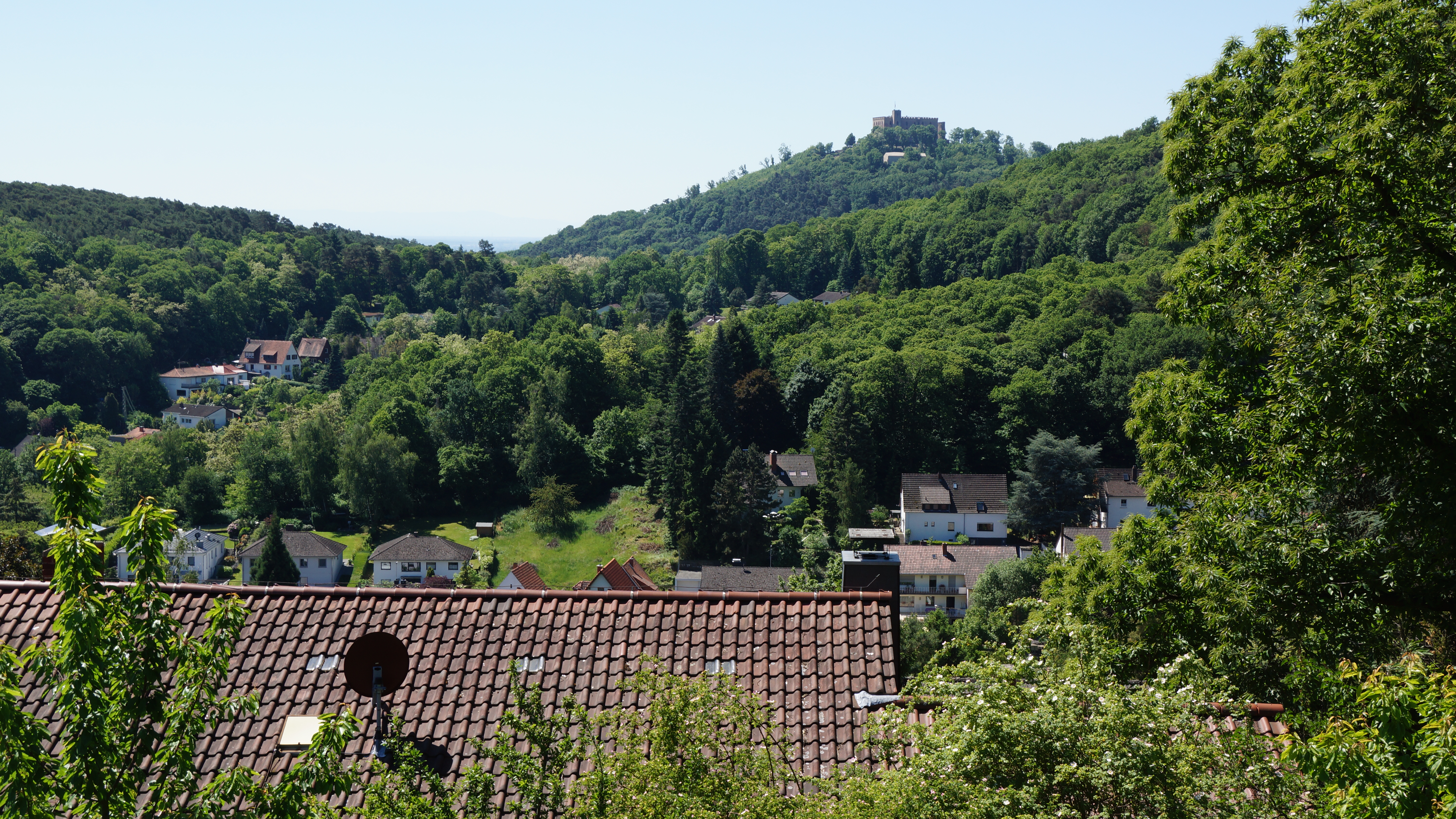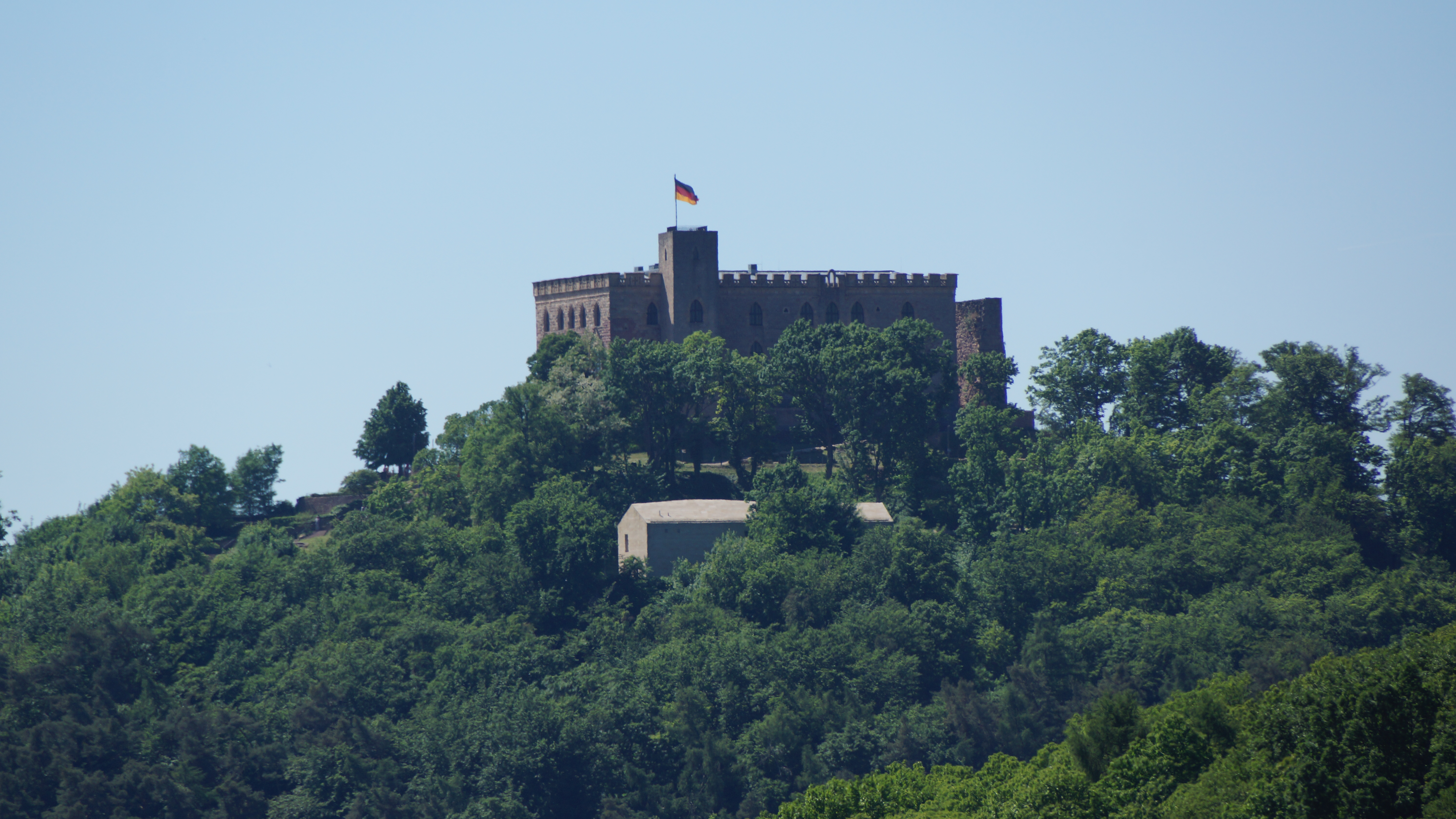 Wohnzimmer mit Panorama Blick auf das Hambacher Schloss