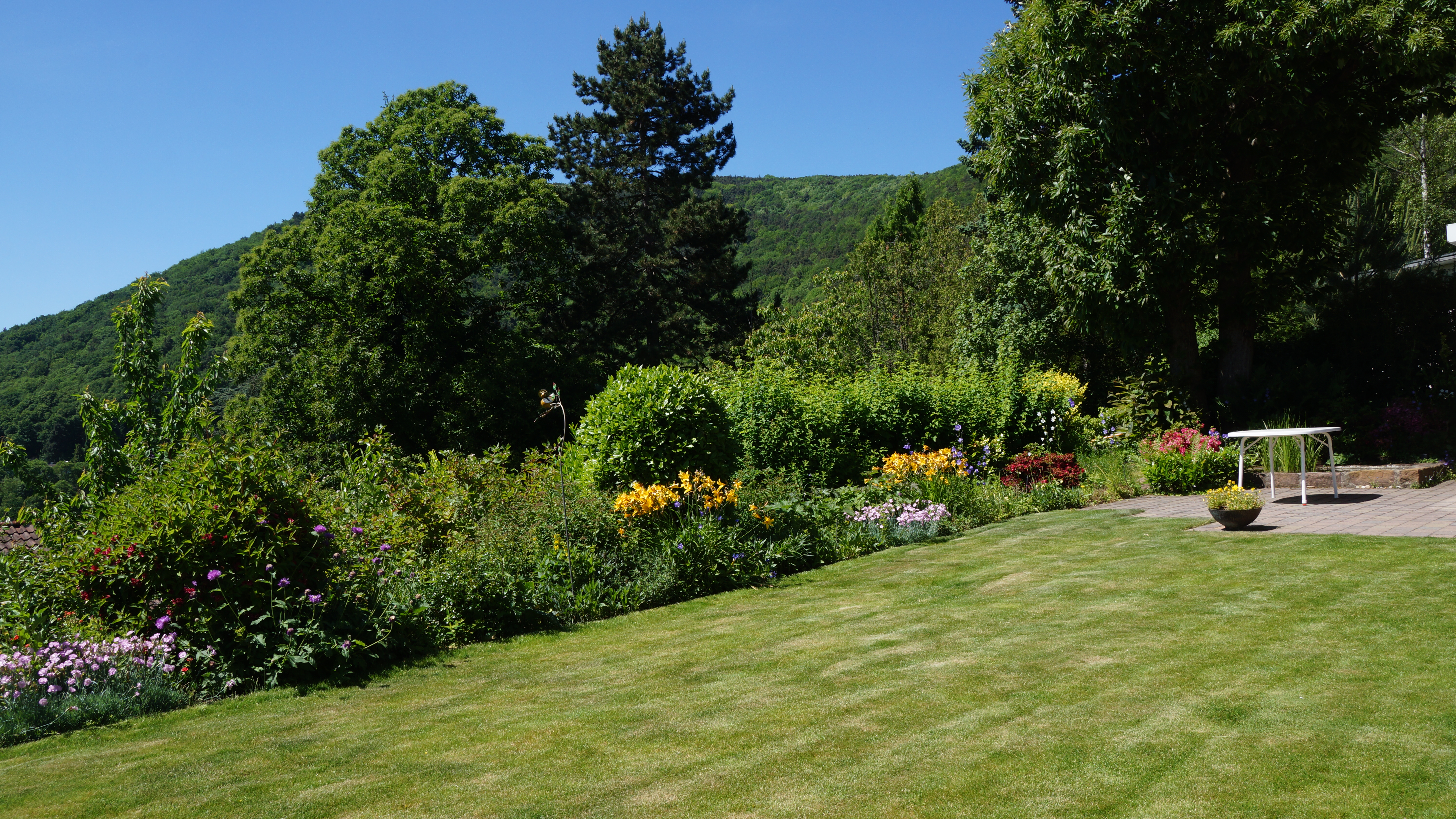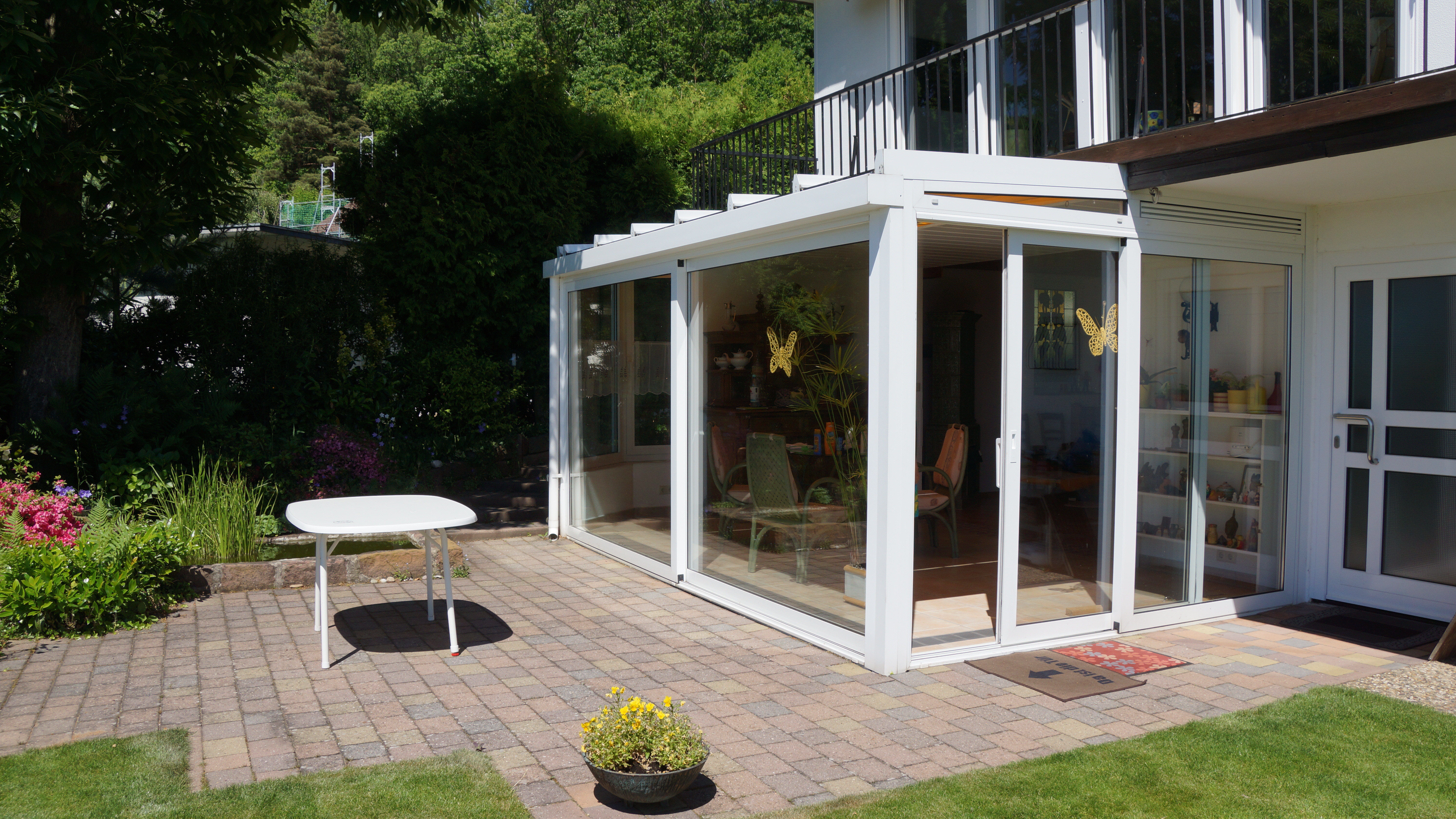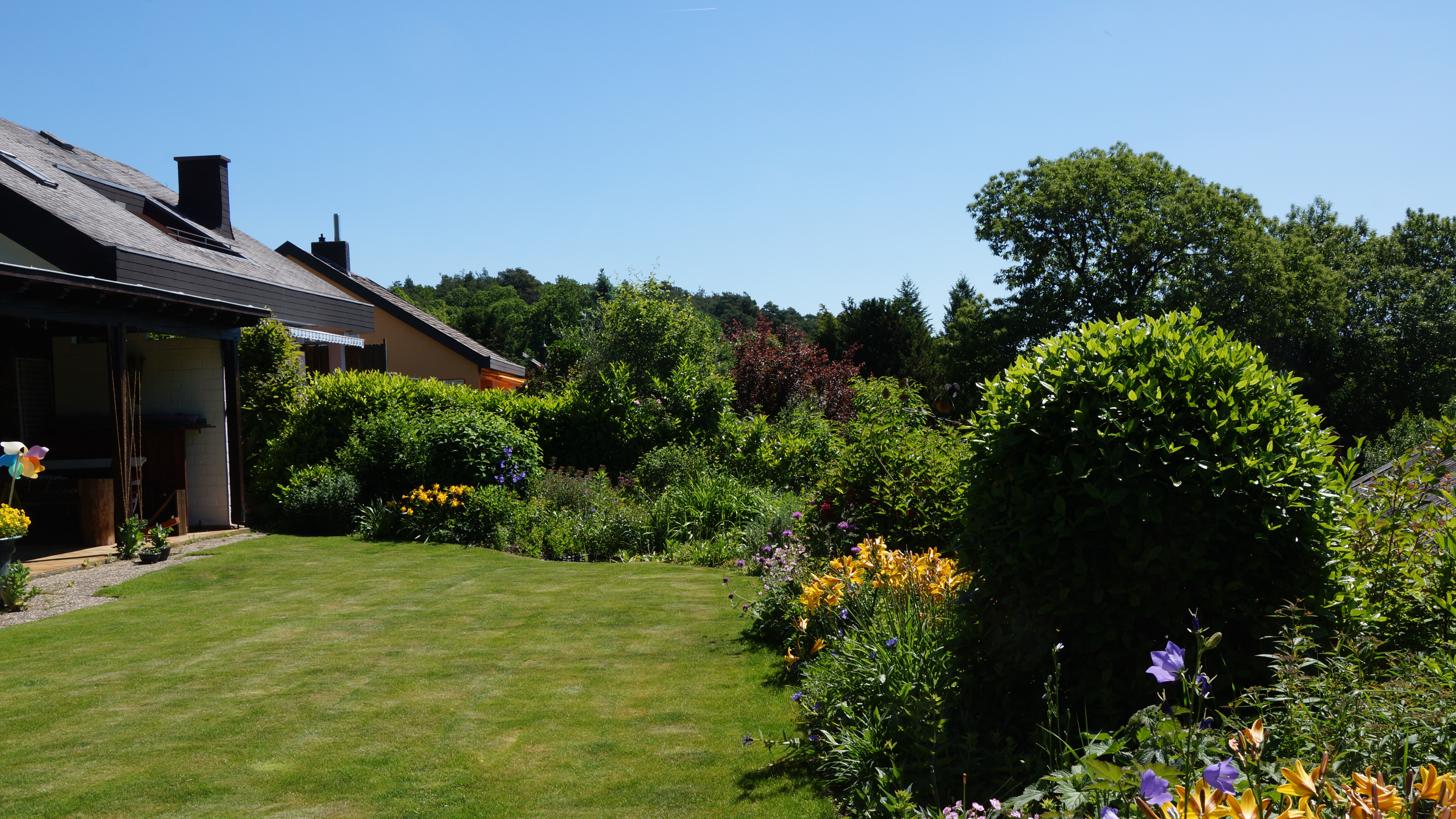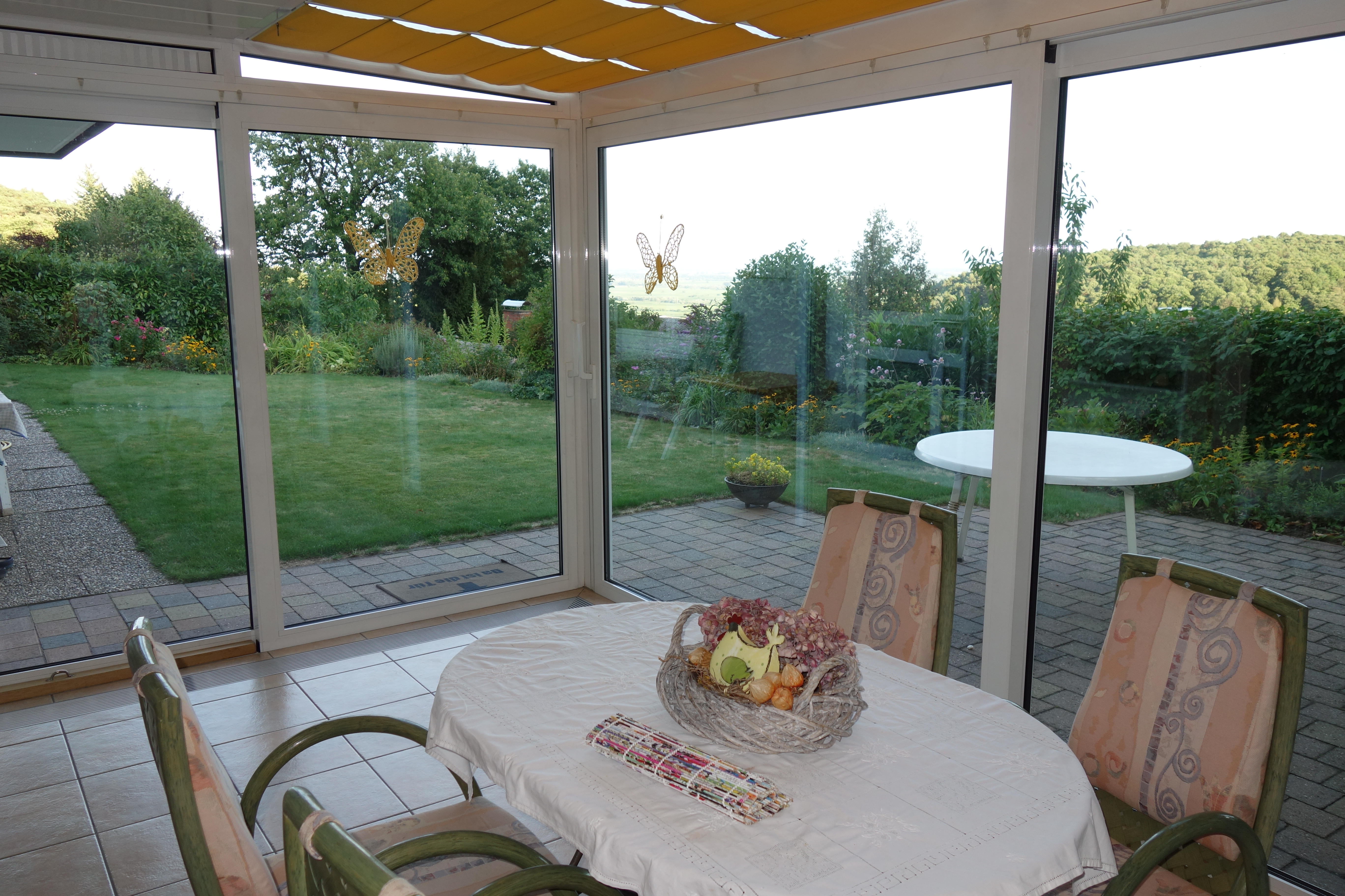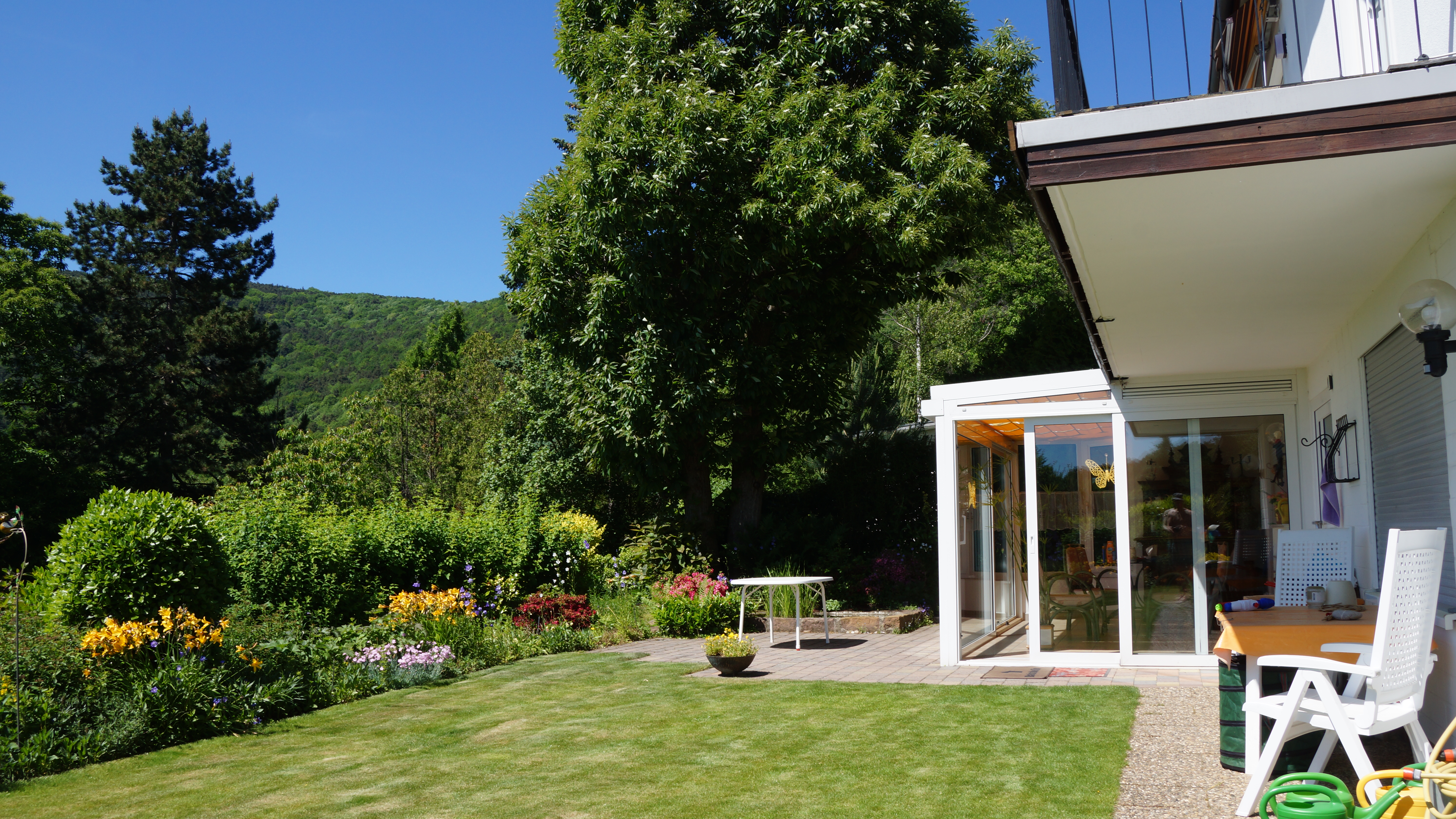 Vom Wintergarten haben Sie direkten Zugang zum pflegeleichten Garten.