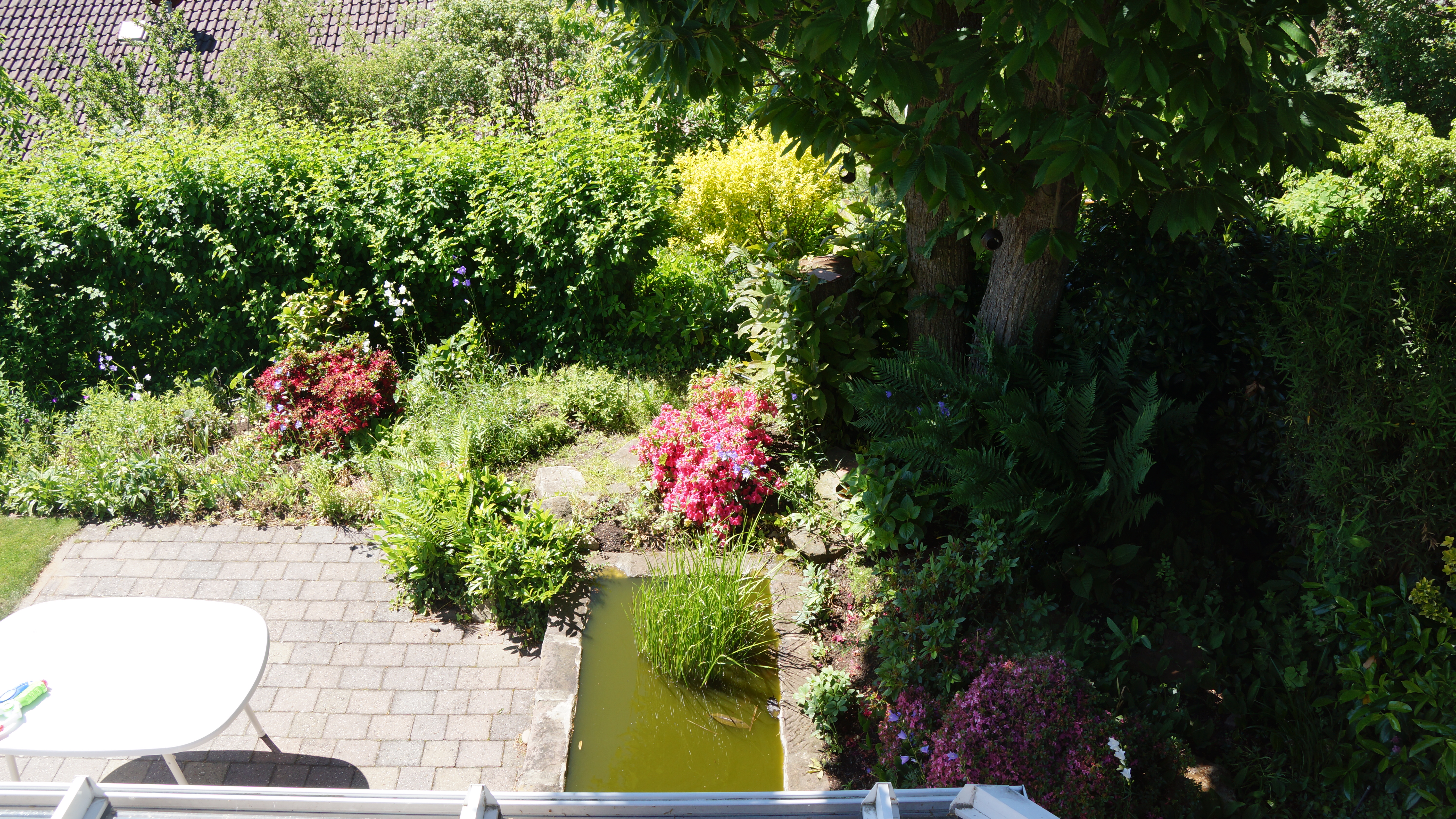 Hier sind Sie mit ca. 170 qm Wohnfläche, verteilt auf zwei Ebenen und dem 669 qm Grundstück genau richtig.