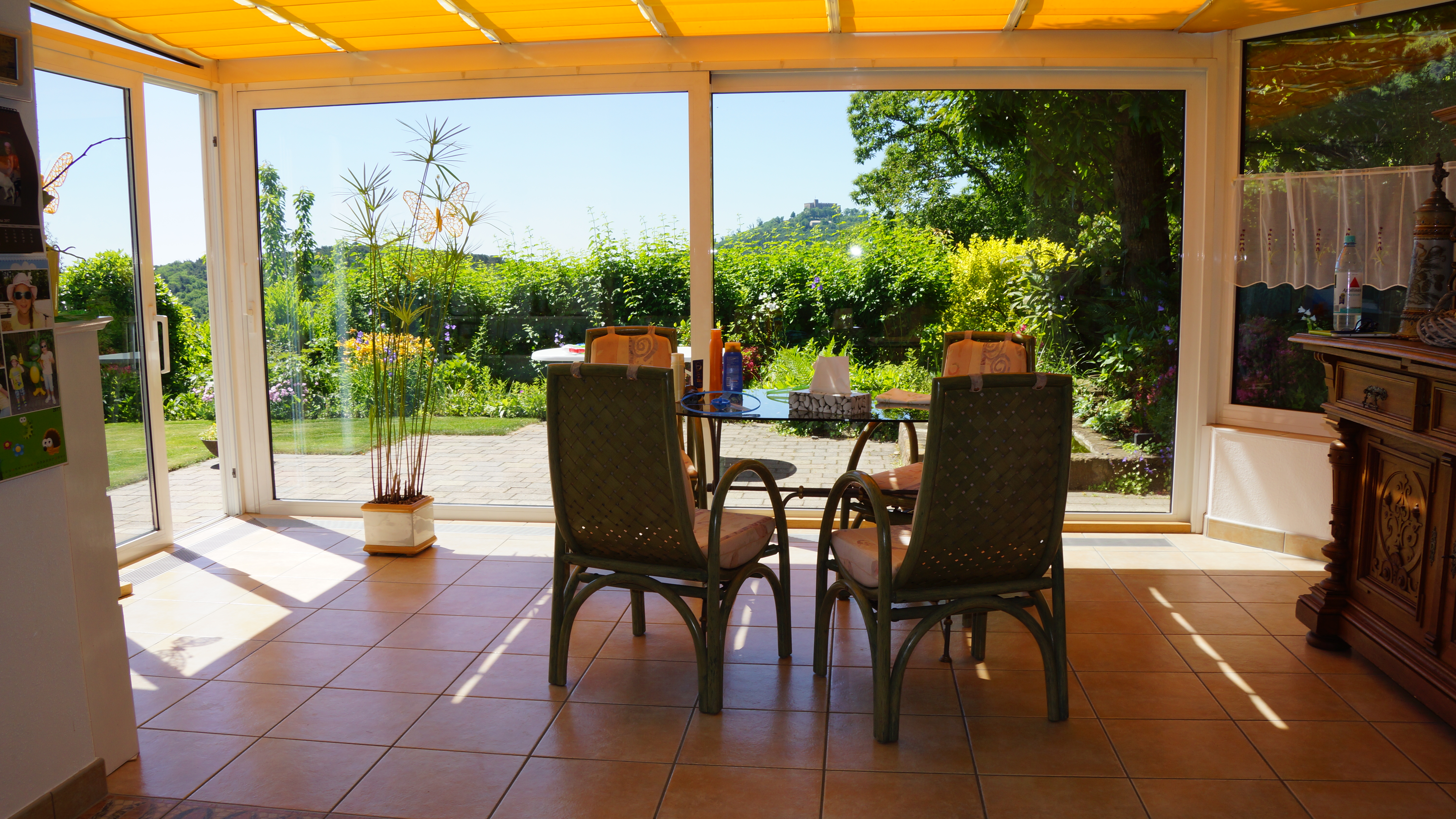 Wintergarten mit Fußbodenheizung und Kachelofen