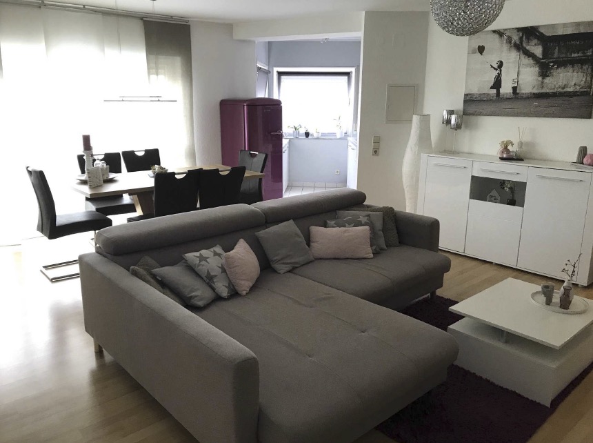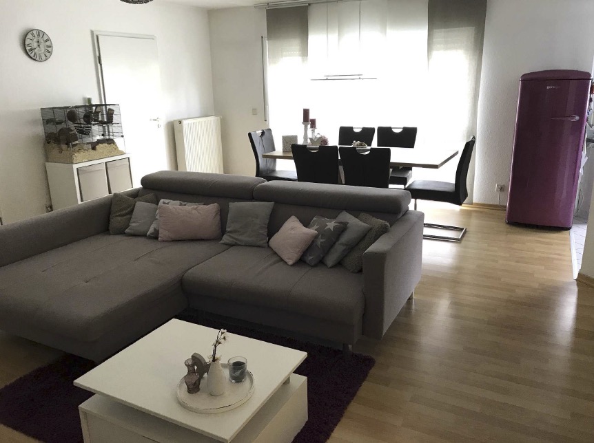 Diese helle und sehr ansprechend geschnittene 3-Zimmer-Wohnung mit einer Wohnfläche von 68 m² befindet sich im Erdgeschoss eines gepflegten Mehrfamilienhauses Baujahr 1994. Die Böden in den Wohn- und Schlafräumen sind mit modernem Laminat und in der Küche und dem Badezimmer mit weißen Fliesen ausgelegt. Vom großzügigen Wohnzimmer mit der offenen Küche gelangt man auf den Balkon sowie in das