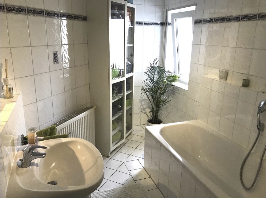 Schlaf- und Kinderzimmer. Das Tageslicht-Badezimmer ist mit einer Badewanne und einer separaten Dusche ausgestattet. Die Fenster im Schlafzimmer sowie im Esszimmer (zum Balkon) wurden im Oktober 2017 erneuert.