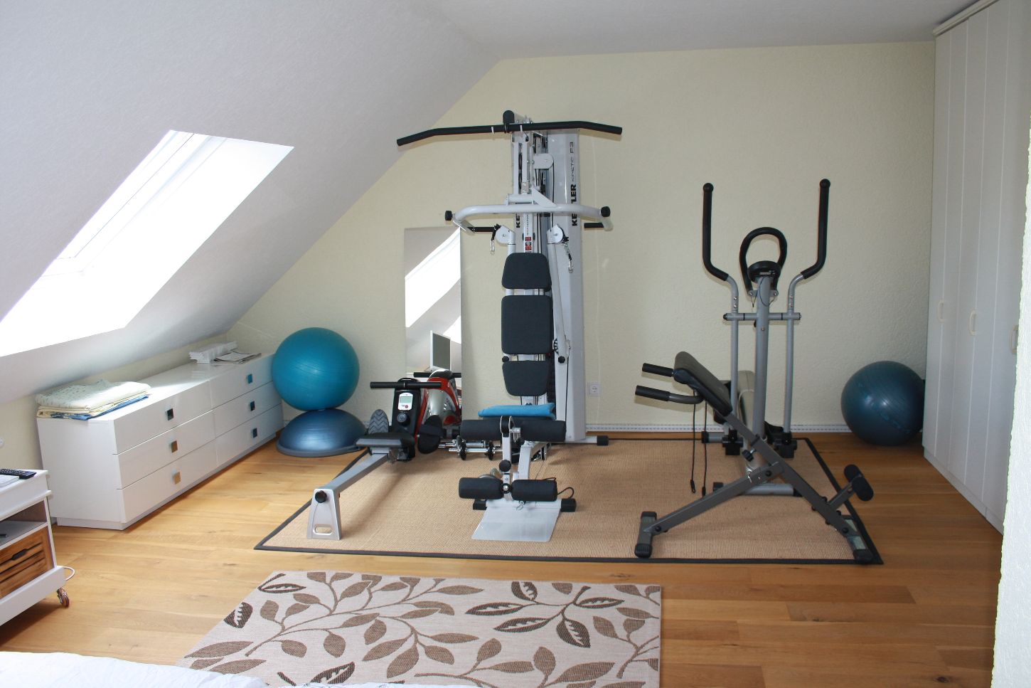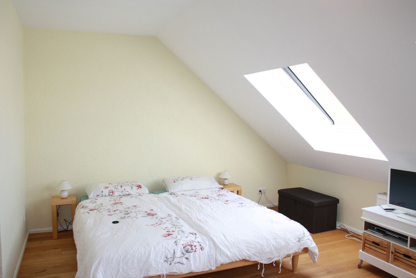 Das Ober- und das Dachgeschoss bieten mit den vier Zimmern und den beiden Bädern viel Raum für die ganze Familie. Hier oben kann man sich bestens zurückziehen, sei es zum Arbeiten oder Entspannen und dabei den Blick auf den Garten zu genießen.
