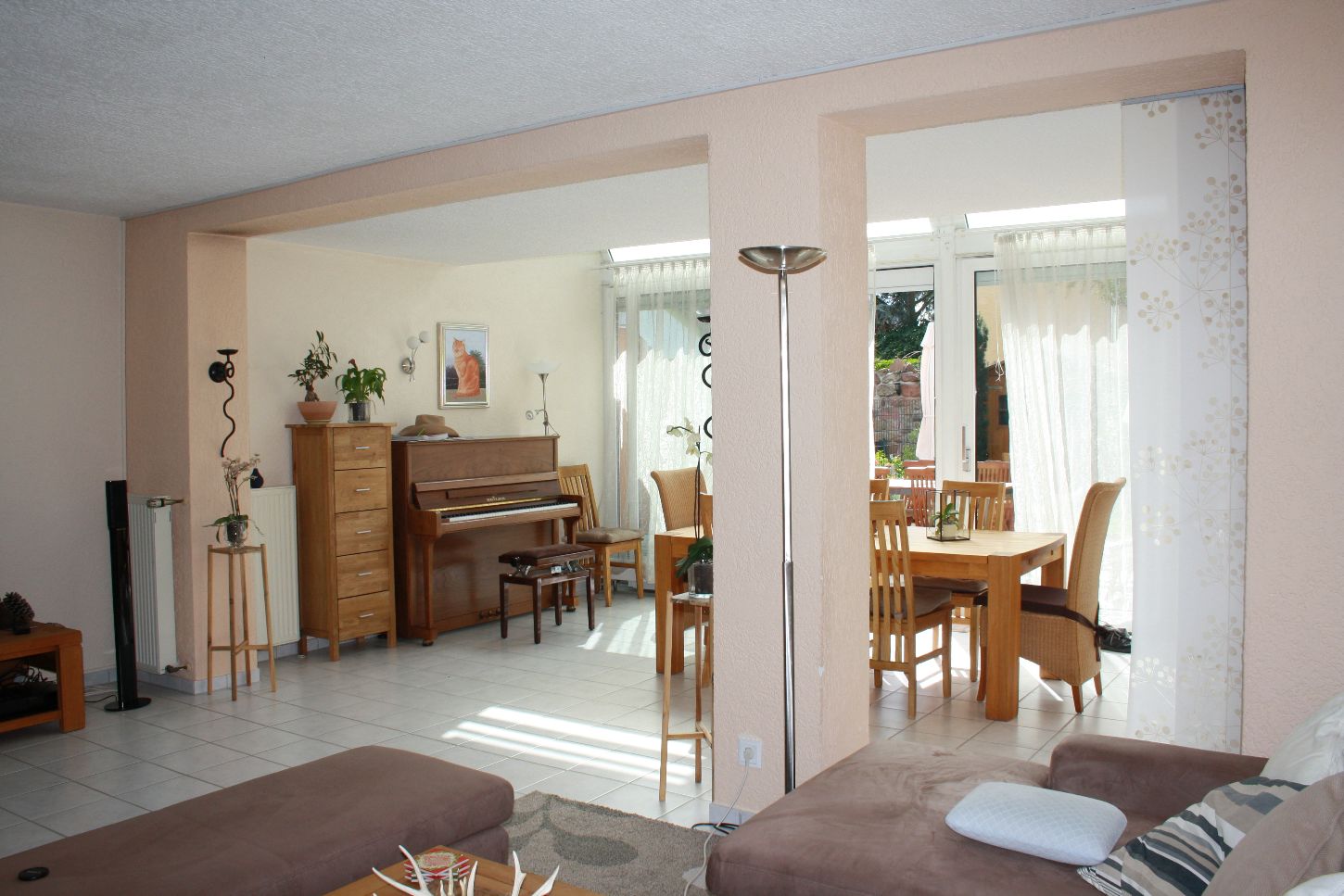 Das Erdgeschoss verfügt über eine separate Küche, ein großzügiger Wohn-Essbereich mit direktem Zugang zur Terrasse und den schön gestalteten Garten. Hier können Sie behagliche Stunden im Freien verbringen.