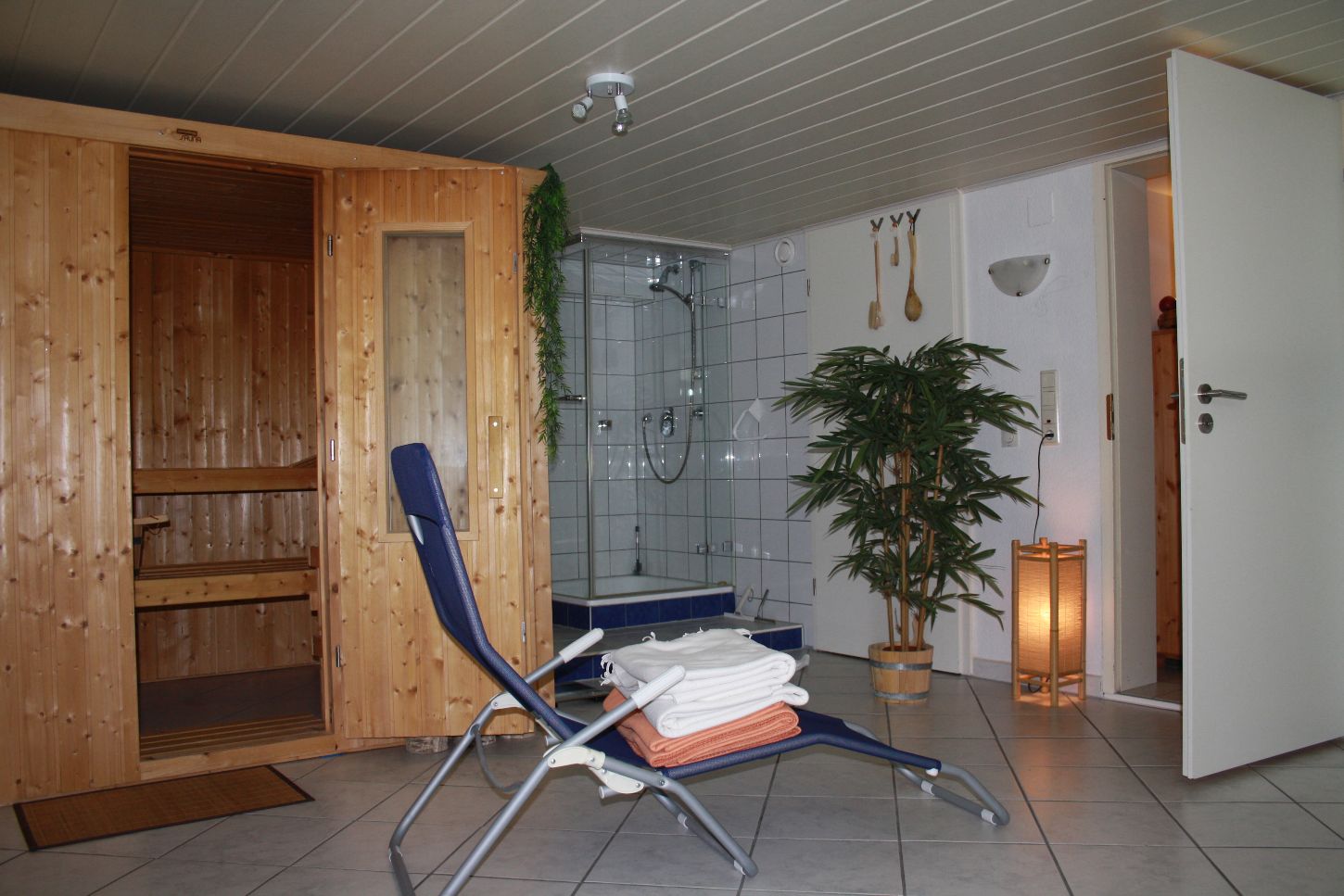 Ein Garant für Ruhe und Entspannung bietet Ihnen die Sauna mit Lüftungsanlage und Dusche im Untergeschoss.